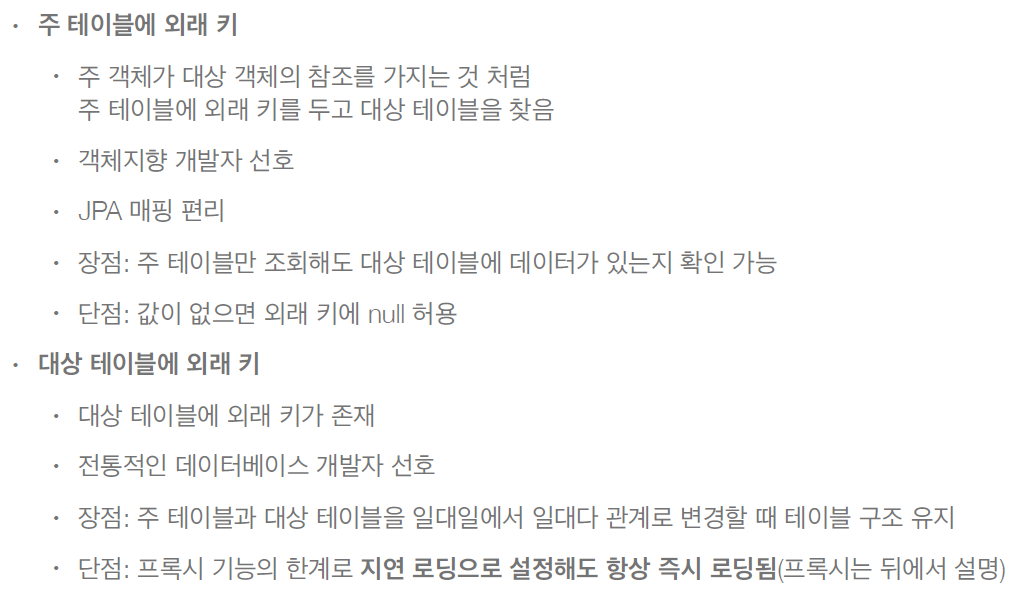 일대일 : 대상 테이블에 외래 키 양방향 정리