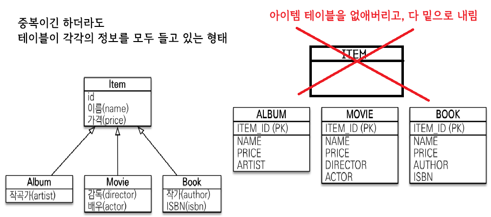 구현 케이스마다 테이블 전략