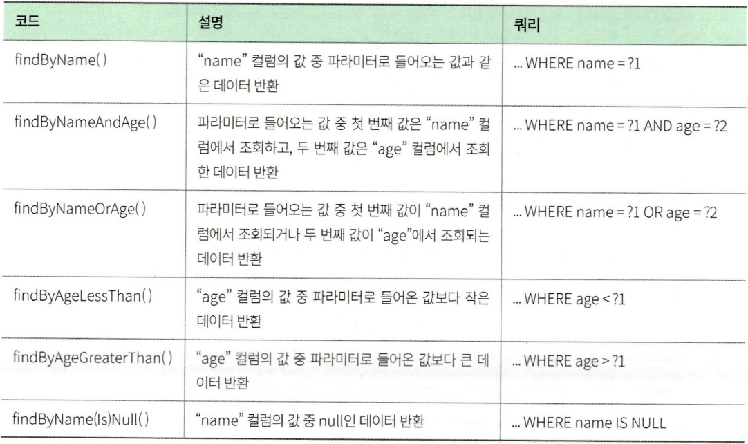 자주 사용하는 쿼리 메서드의 명명 규칙