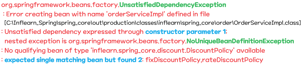 - DiscountPolicy 의 하위 타입인 FixDiscountPolicy , RateDiscountPolicy 둘다 스프링 빈으로 선언해보자.