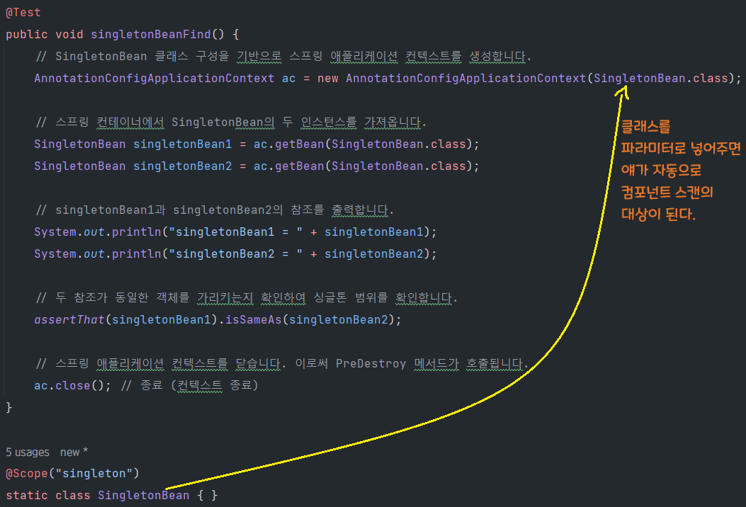 AnnotationConfigApplicationContext ac = new AnnotationConfigApplicationContext(SingletonBean.class);