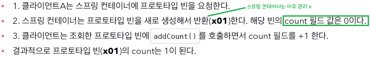 프로토타입 빈이 새로 생성되기는 하지만