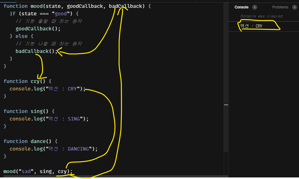 ex. 기분에 따라 하는 행동 출력하기